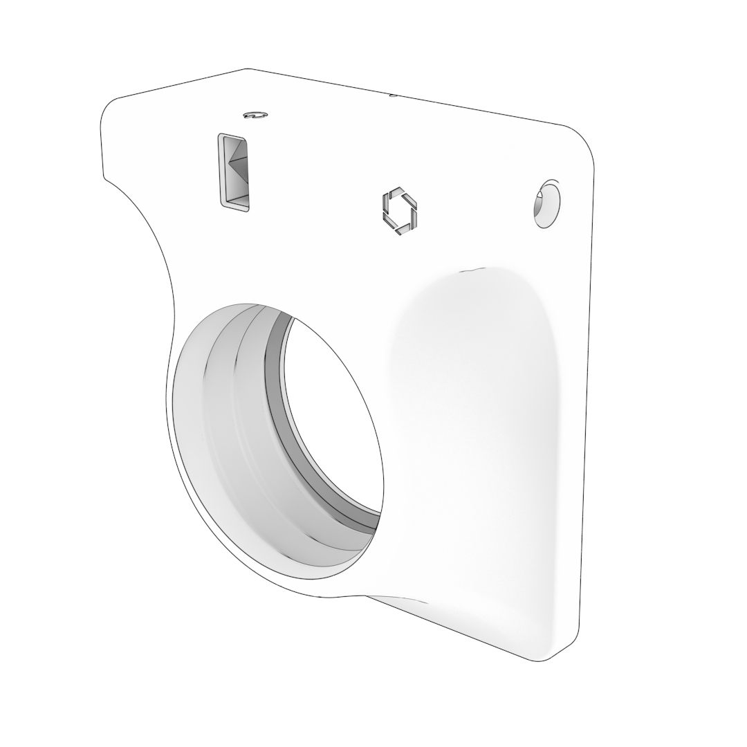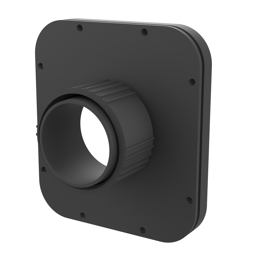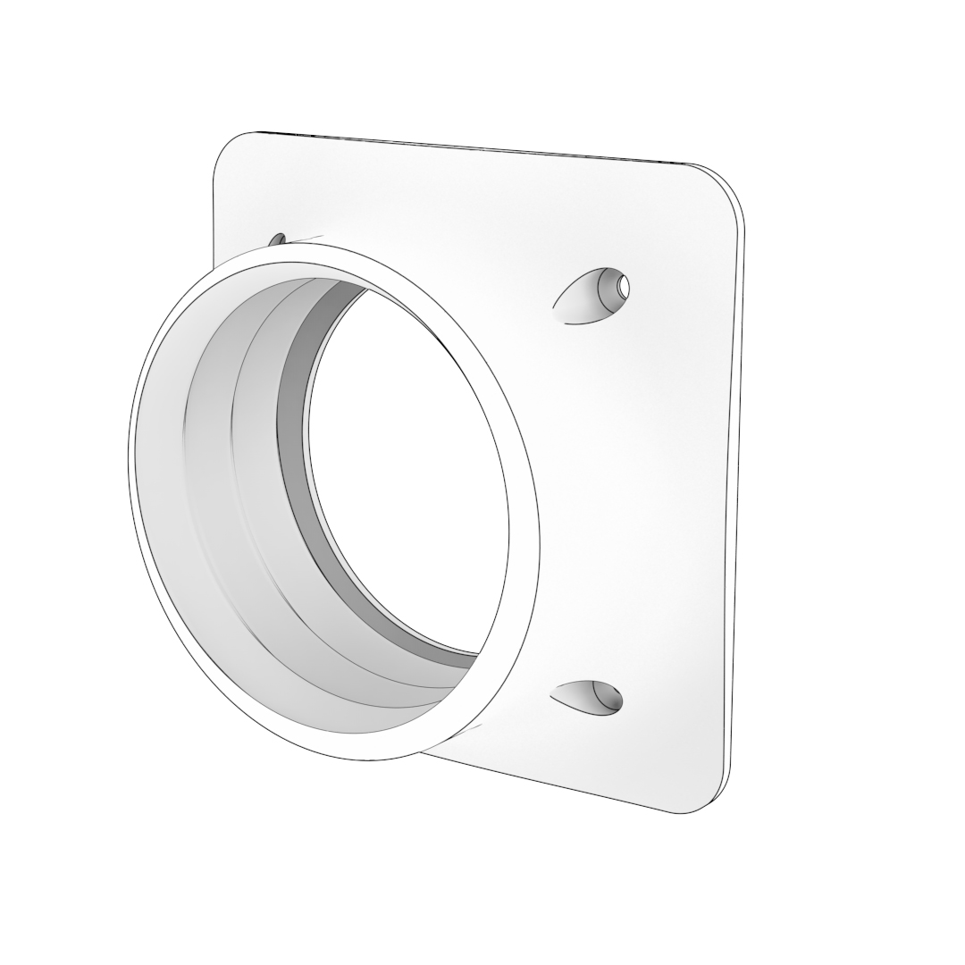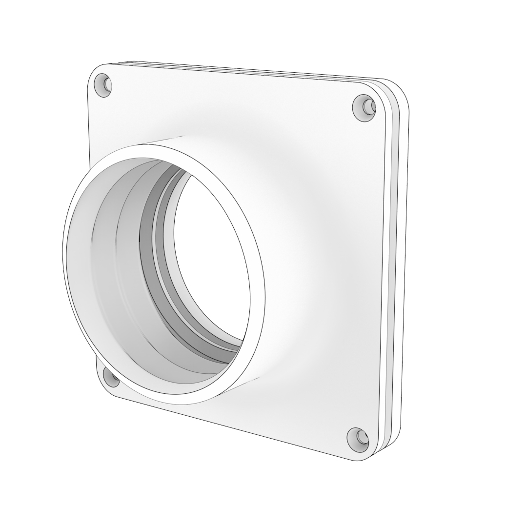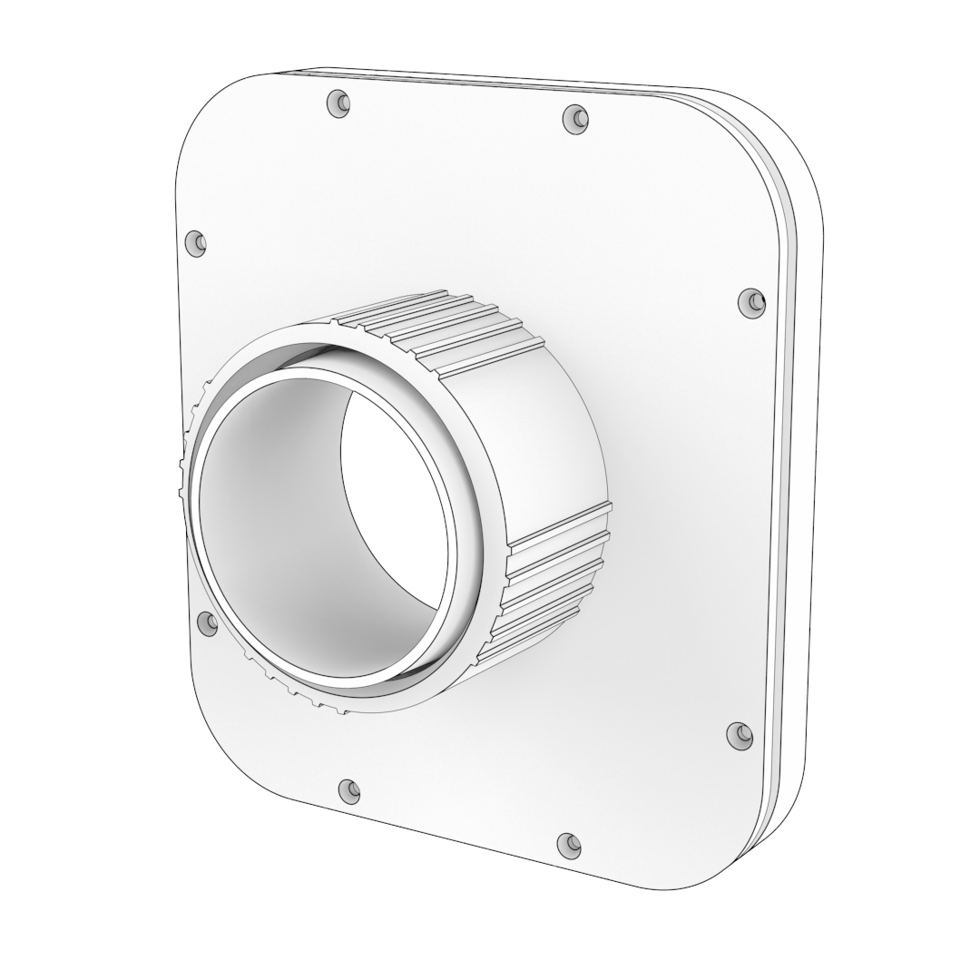 - Platine pour emplacement AlveoONE en montage panneau pour tuyau 76mm semi-rigide et bague de serrage