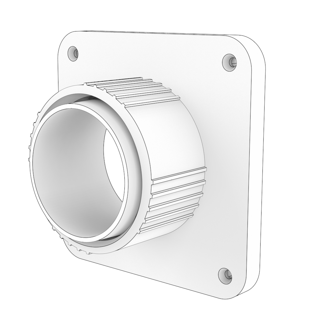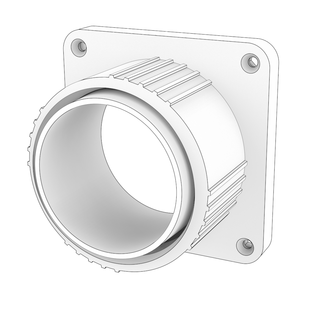 - Platine cylindrique en montage panneau pour tuyau 76 mm semi-rigide et bague de serrage