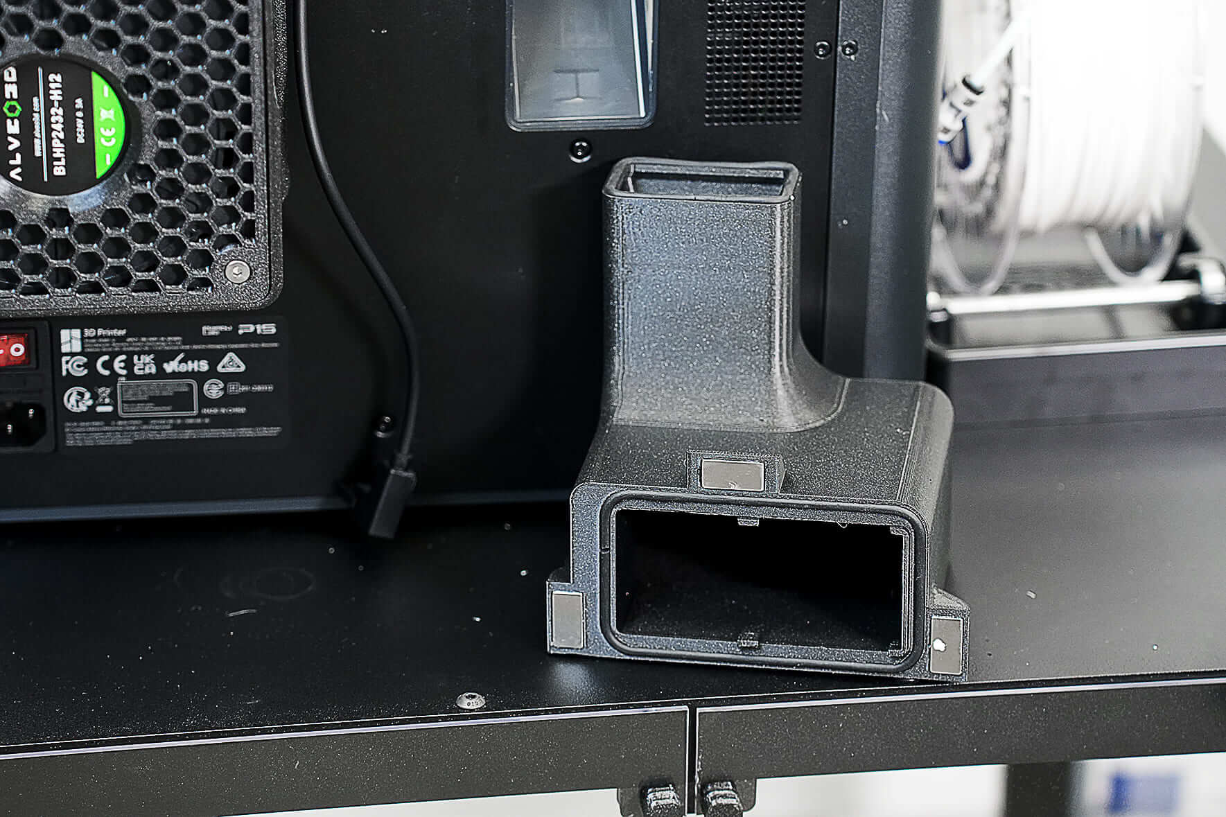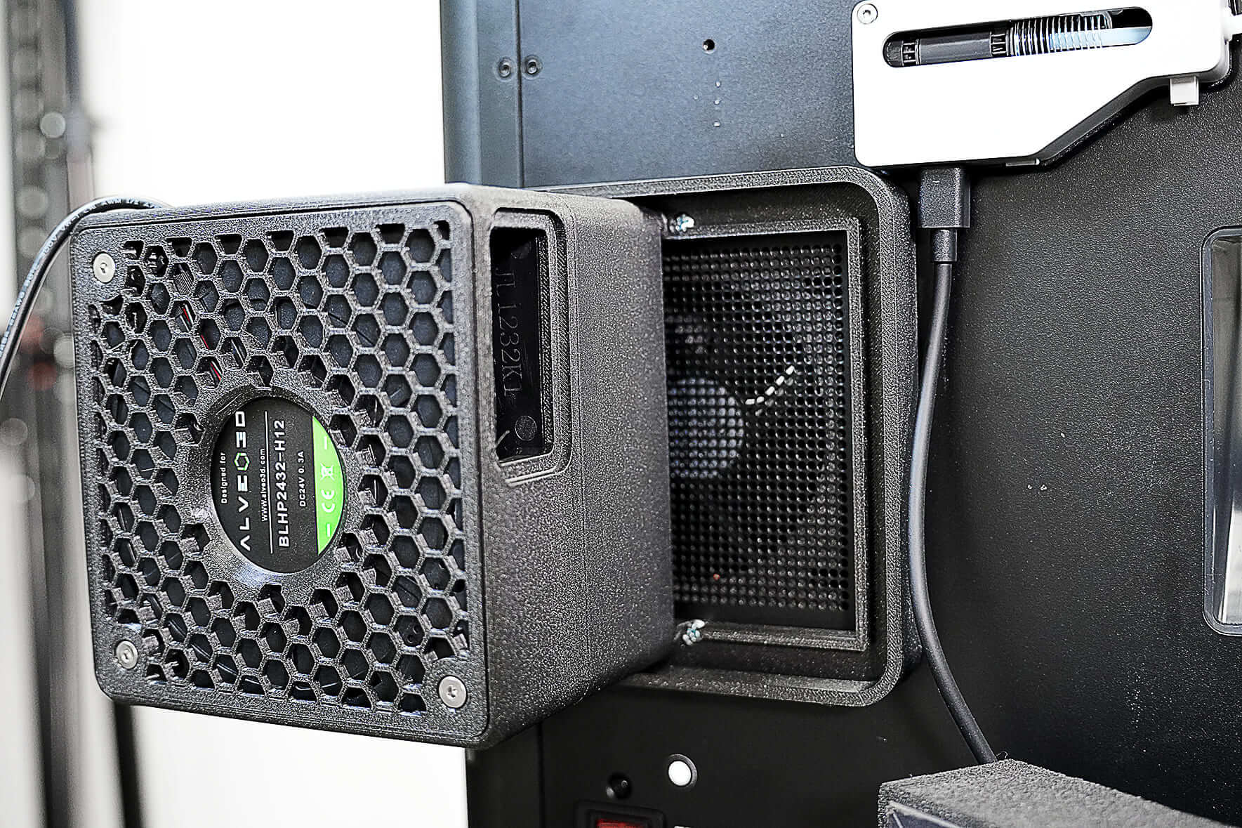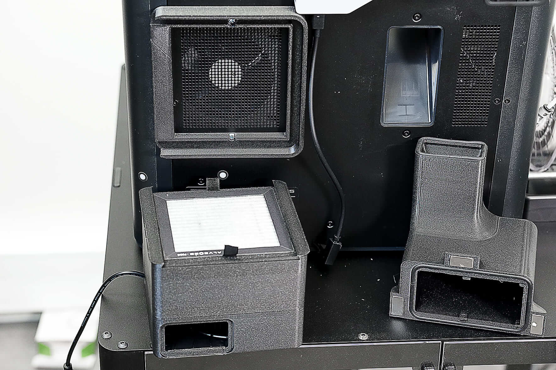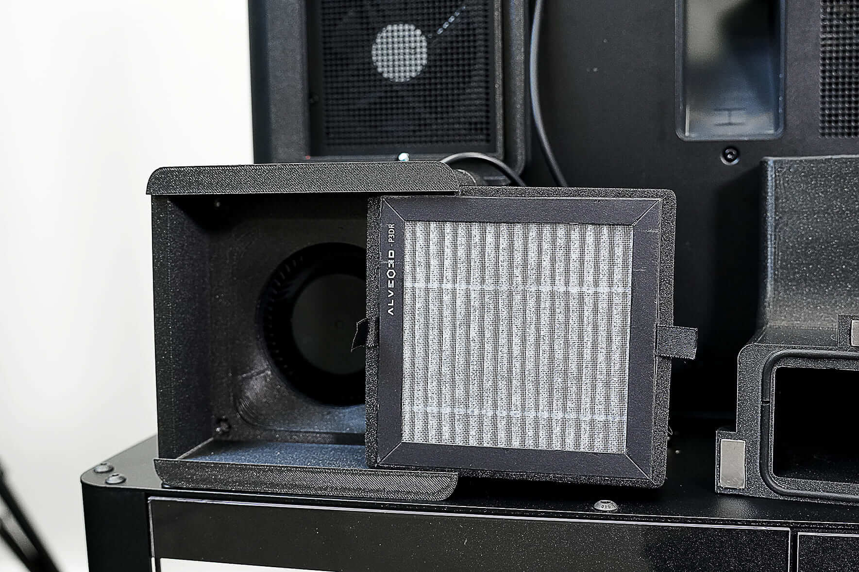 Sin embargo, con el kit Alveo3D, el ventilador incorporado continúa extrayendo y recirculando el aire en la cámara, ayudando a mantener la alta temperatura para una impresión óptima. El kit también incluye un puerto de escape que expulsa eficazmente el aire, por lo que es ideal para filamentos como PLA o PETG que no requieren altas temperaturas.